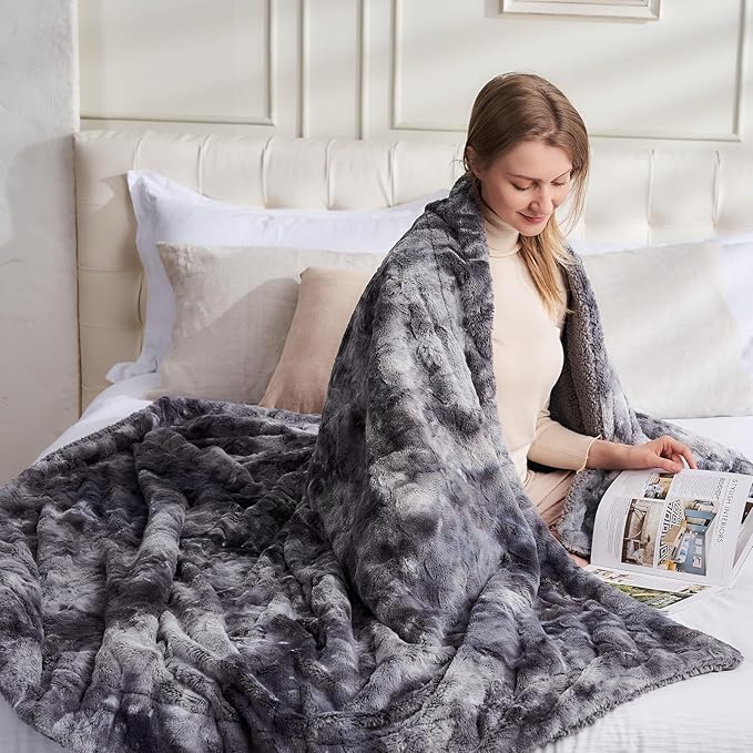 - ULTRA SOFT FABRIC: Faux fur fabric + super soft sherpa fabric. This beautiful sherpa blanket utilizes advanced tie-dye technology, carefully constructed of high grade luxurious faux fur and extremely soft Sherpa. You will fall in love with this softness and elegance.