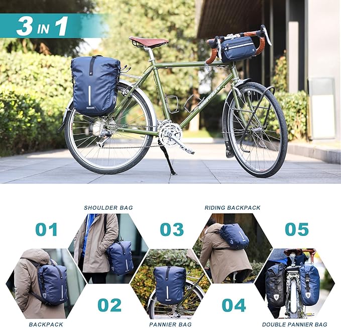 Rhinowalk Bike Pannier Bag, Waterproof Rack Bicycle Bag 20L, Bike Bag Shoulder Bag Laptop Pannier Backpack Professional Cycling Accessories