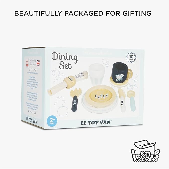 Le Toy Van Wooden Cutlery Dinner Set - Kids Plates and Utensils - Toddler Wooden Toys for Ages 2 Years +