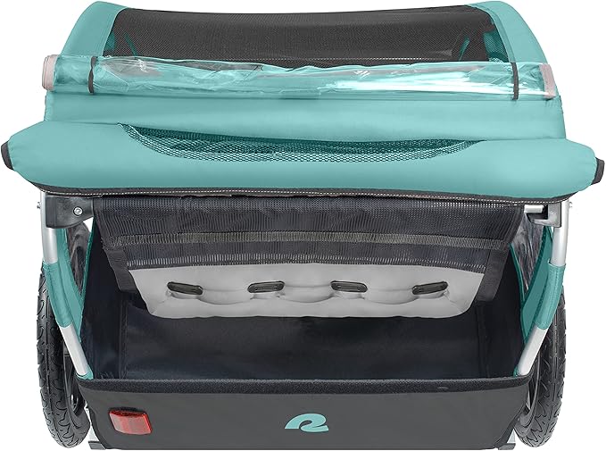 - SMART STORAGE SOLUTION: Large rear compartment in this two-seat bicycle trailer for kids holds gear, snacks, and toys. Weather-resistant fabric keeps items dry and protected during your journey