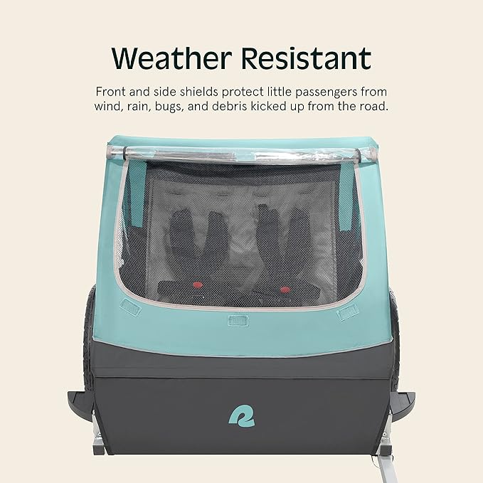 - WEATHER-READY PROTECTION: Durable shields and vented windows guard your bike trailer for kids passengers against rain, wind, bugs, and road debris while maintaining comfortable airflow throughout