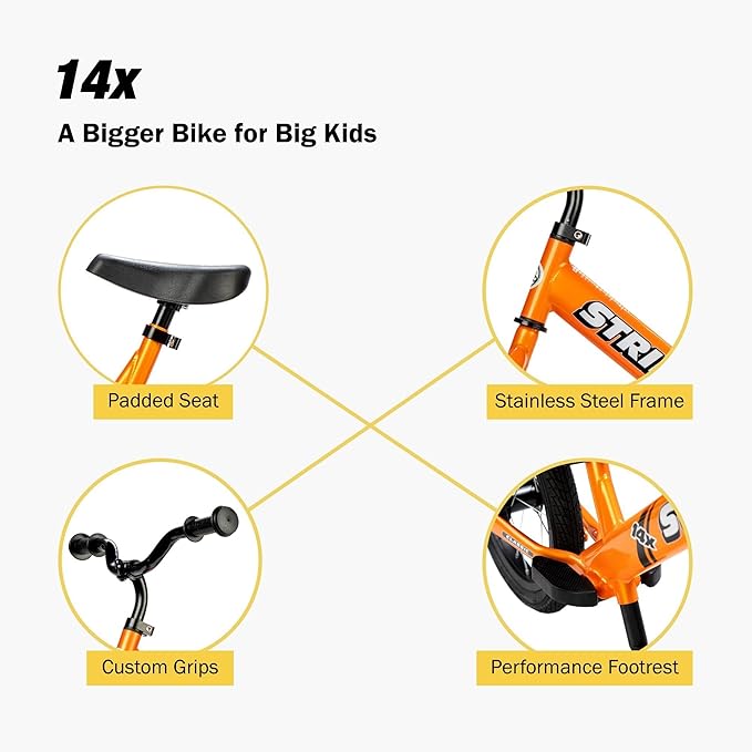 Strider 14x, Balance Bike for Kids 3 to 6 Years - Includes Custom Grips, Padded Seat, Performance Footrest & All-Purpose Tires - Easy Assembly & Adjustments