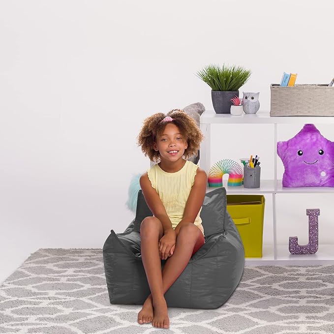 Posh Creations Bean Bag Chair Structured Comfy Seat for Gaming, Reading and Watching TV, for Children, Newport Chair, Nylon - Charcoal Gray