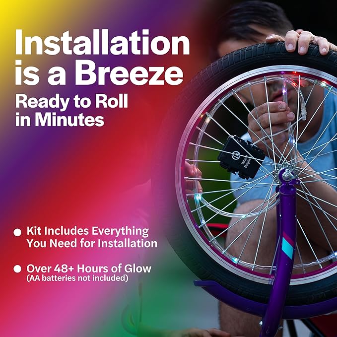 - INSTALLATION IN A SNAP - Our easy-to-install bike spoke lights are battery-powered and ready to go. Perfect as kids bike accessories for boys, and girls of all ages, and even bike enthusiasts at raves like burning man. Ride and shine in style
