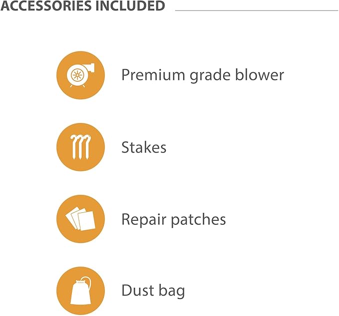 - COMPLETE SET: Includes everything you need to get bouncing, including an air blower, stakes, repair patches, and dust bag, ensuring a hassle-free setup for any occasion.
