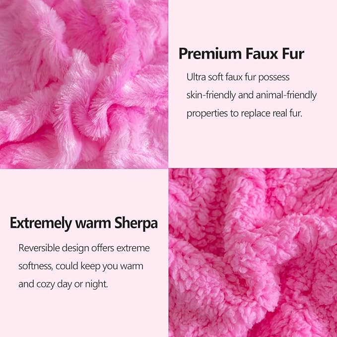 NEWCOSPLAY Super Soft Faux Fur Blanket Twin Size Pink Sherpa Fuzzy Plush Warm Blanket for Sofa Bed (Pink, Twin(60"x80"))