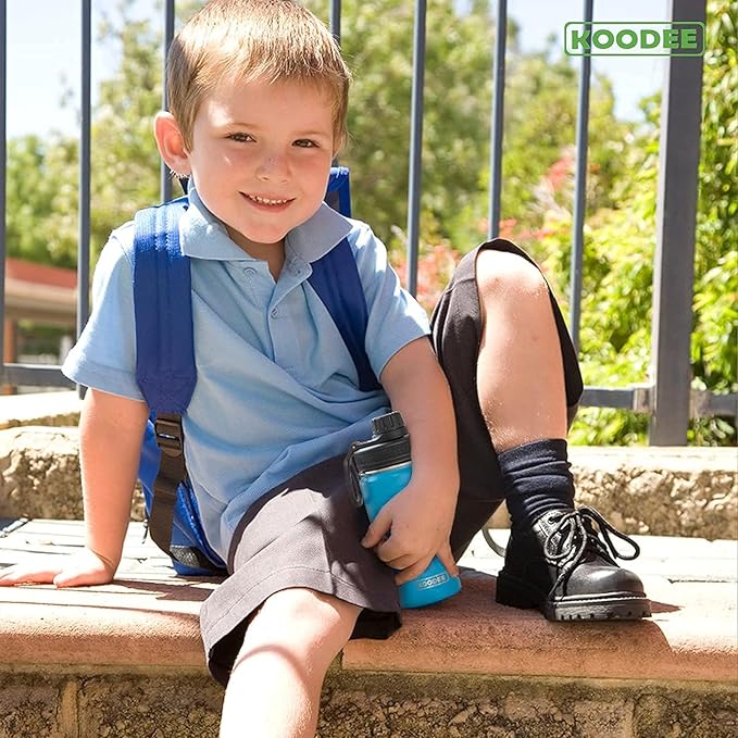 koodee 12 oz Water Bottle Stainless Steel Vacuum Insulated Wide Mouth Water Flask with Leakproof Spout Lid (Sky Blue)