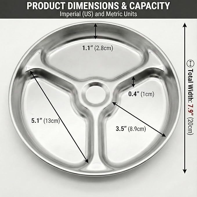 - 3 Convenient Compartments: Includes 3 main dish slots; size at 8 X 1.2 inches, ideal for all meals.