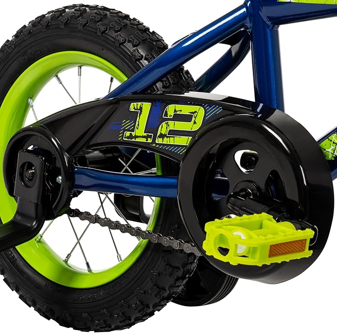- BOLD STYLE: This blue bike brings bold energy to every ride, featuring vibrant green accents and a cool crossbar pad that gives it a rugged, adventurous look kids will love.