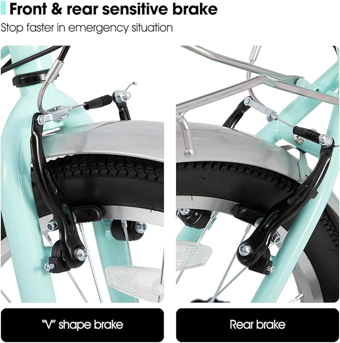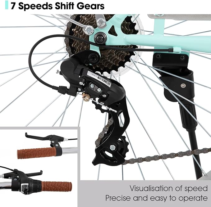 - Shifting and Braking: The V-brake system ensures efficient and responsive braking performance, a 7-speed gear system provides sufficient flexibility to handle various riding conditions