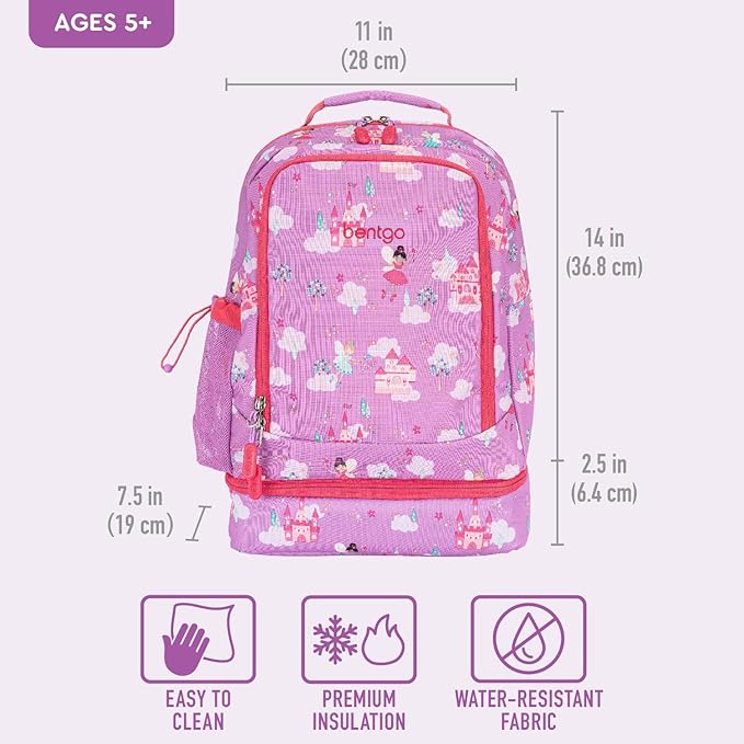 - 2-in-1 Backpack: Combines all the space and durability of a school or daycare backpack with the convenience of an insulated lunch bag! Made with premium, non-toxic fabric, this 2-in-1 bag is perfect for kids ages 5 and up with its spacious design, unique prints and colors, and water-resistant exterior to avoid spills—making it easy to clean!