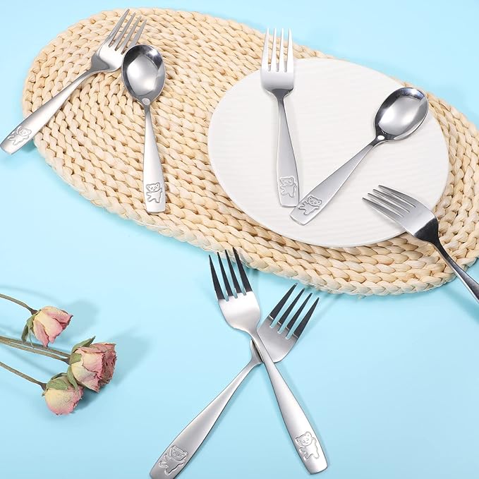 - ✅Cute engraved bear: the end of each kids utensils feature a cute bear pattern, the lovely design can easily find favor with children in different ages and genders such as juniors, toddlers, preschoolers, school age children and so on