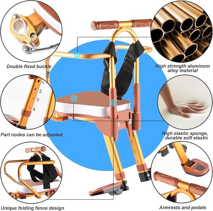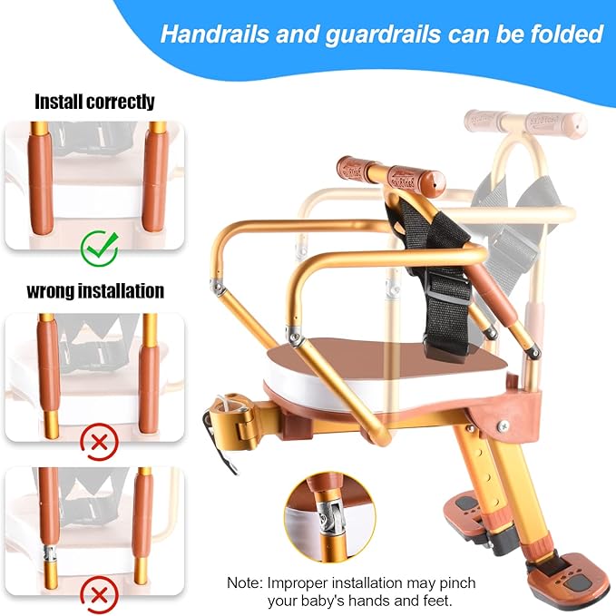 - 【FOLDABLE DESIGN】The armrest and pedals can be folded by the stainless steel rod. Pedal can be adjusted by four level to meet your kids' needs. Front mount child bike seat adopts a foldable design and is equipped with a quick installation wrench. It is easy to install. After being disassembled and folded, it can be put in a bag and can be carried with you;