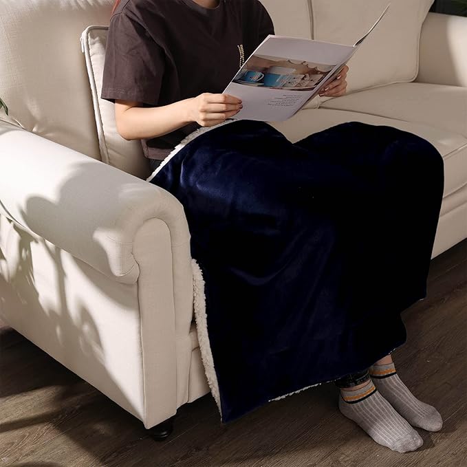 NANPIPER Baby Sherpa Blanket,Warm Toddler Throw Blanket,Soft Newborn Fleece Blanket for Winter (Navy Blue,30x40 inches)