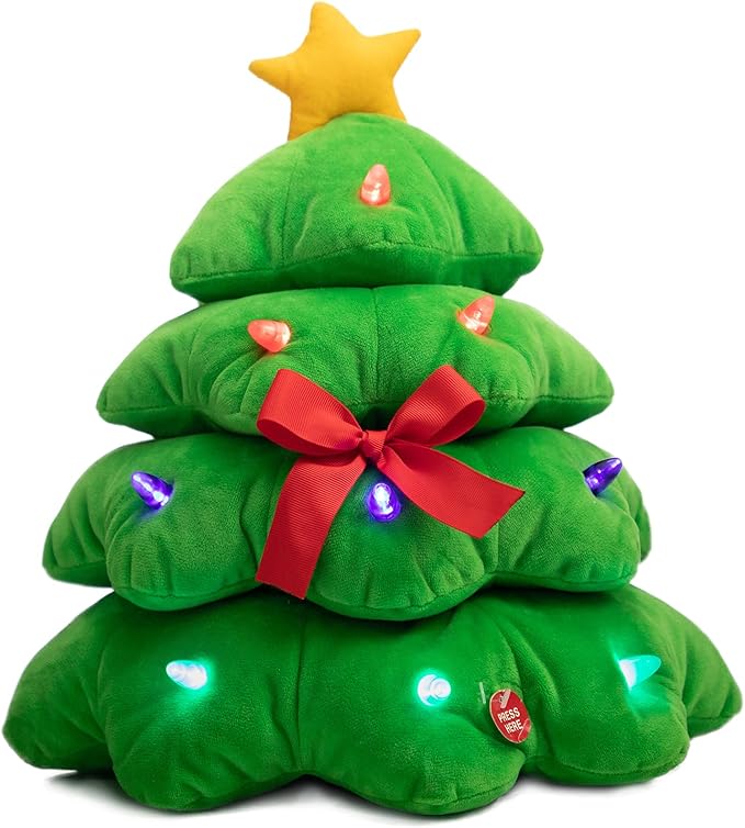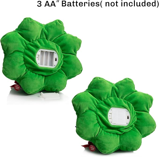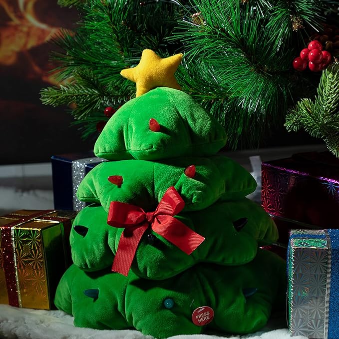 - Load the batteries and press the button, the Christmas tree plush will sing a Christmas song and dance joyfully with colorful lights glowing