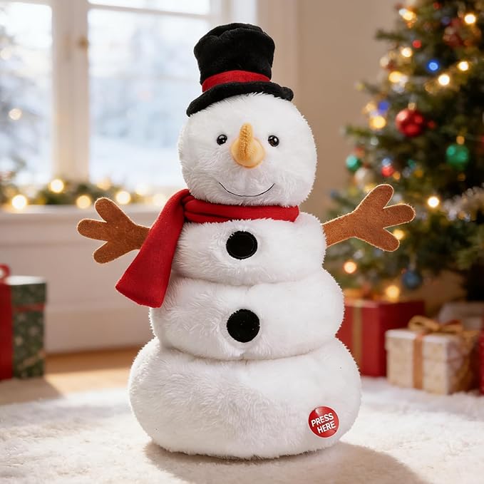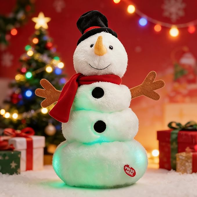 HollyHOME Animated Snowman Plush Singing and Dancing Snowman with LED Lights Christmas Plush Toy for Kids