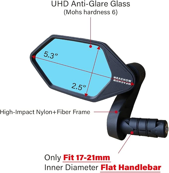 MEACHOW New Bar End Bike Mirror, Crystal UHD Automotive Grade Glass Lens E-Bike Mirrors, Scratch Resistant, Safe Rearview Mirrors, (Blue Left Side) ME-022LB