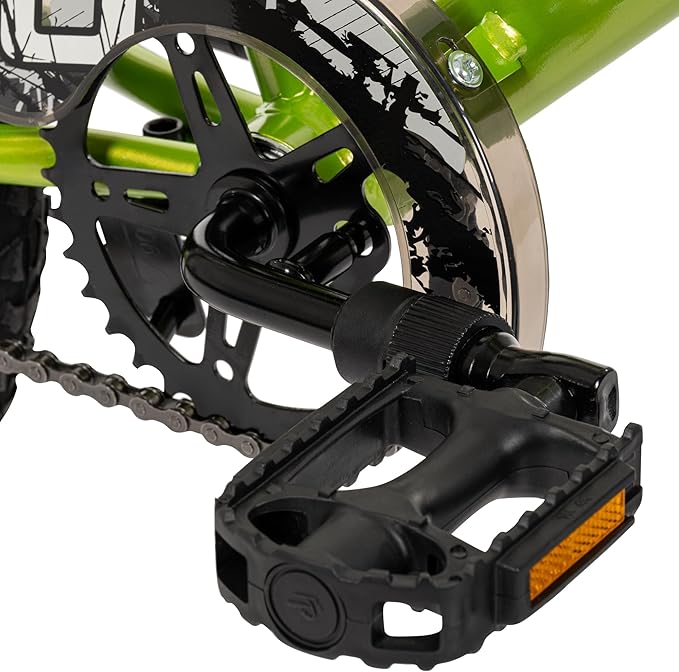- BOLD GREEN STYLE: A glossy green frame with black accents and a rugged crossbar pad gives this bike a standout look that’s ready for everyday adventures around the neighborhood.