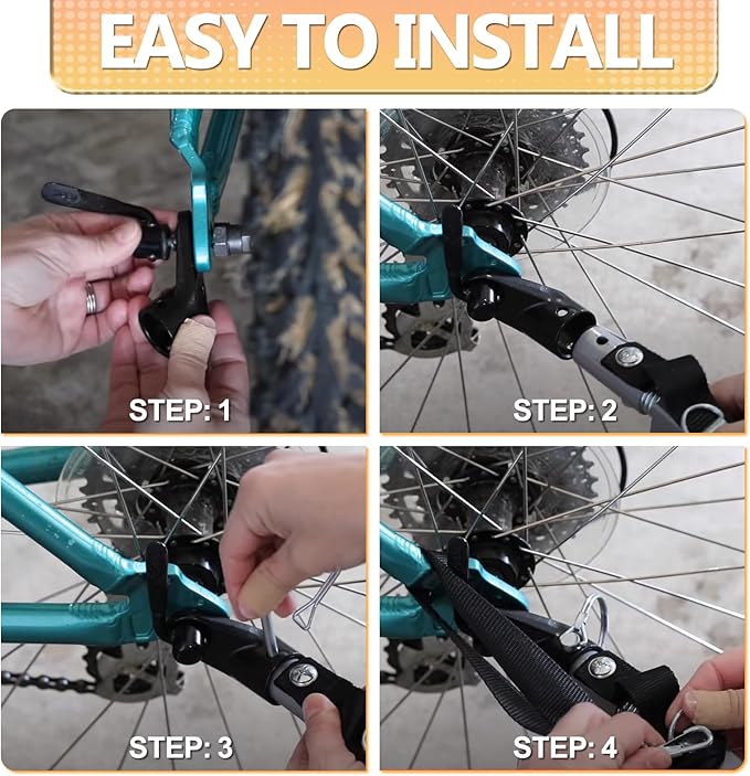 - ➽【 EASY INSTALLATION 】:1.Fix the bike trailer hitch on your bike with a screw nut. 2.Insert the trailer attachment. 3.Put the pin on.Each bicycle trailer coupler is equipped with a separate connecting pin, the pins are difficult to open, and once installed, they will not fall off easily.!!!Please notice the size of the shaft diameter is 0.59in