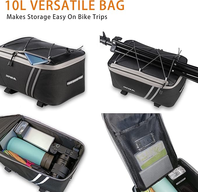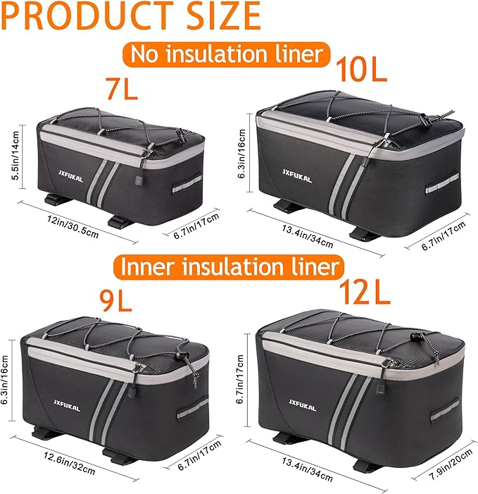 JXFUKAL Rear Bike Rack Bag with Rain Cover, 7L/9L/10L/12L Waterproof Bicycle Ebike Saddle Bag Cycling Pannier Trunk Carrier with Reflector & Adjustable Cord for Commuter Travel Outdoor