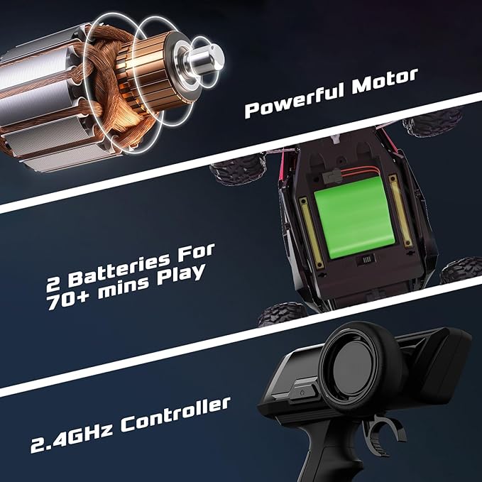 - 【Low Latency and Powerful Remote Control Unit】The remote frequency is 2.4GHz and the control distance is about 165 feet, enable you to play with remote car with no signal interference