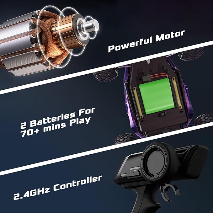 - 【Low Latency and Powerful Remote Control Unit】The remote frequency is 2.4GHz and the control distance is about 165 feet, enable you to play with remote car with no signal interference