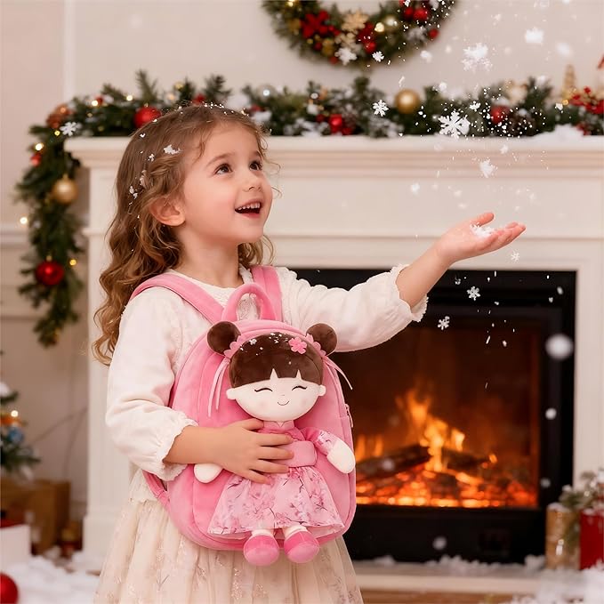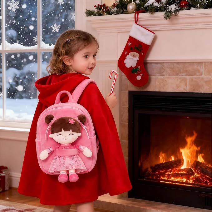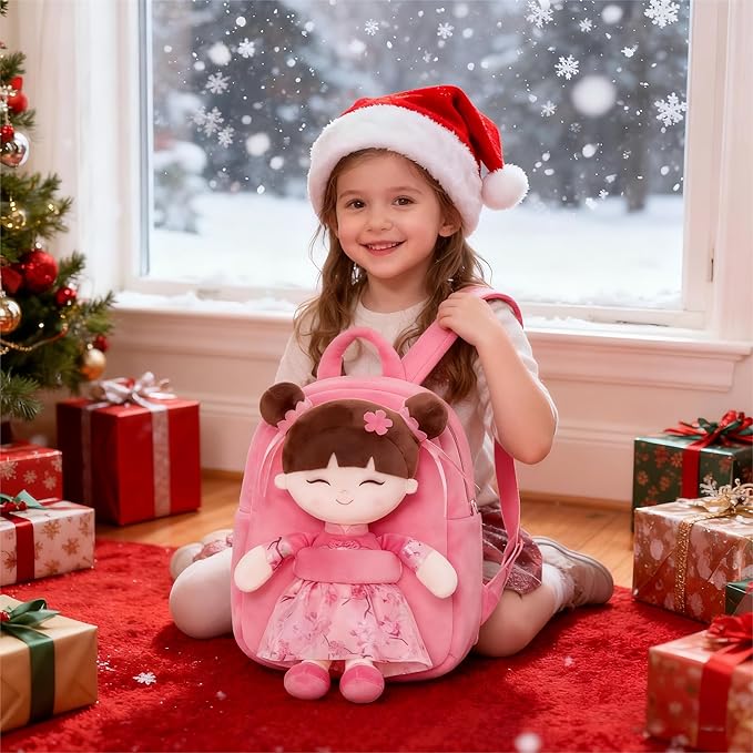 Gloveleya Back to School Gifts for Girls Kids Backpack Toddler Backpack Soft Plush Asian Girl Doll Backpacks Pink 9"