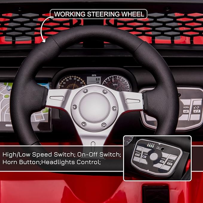 - Just Like The Real Thing: This toddler electric car feels just like the real thing; with working headlights, safety belts, steering wheel, and horn, your child can cruise in style just like mom or dad.