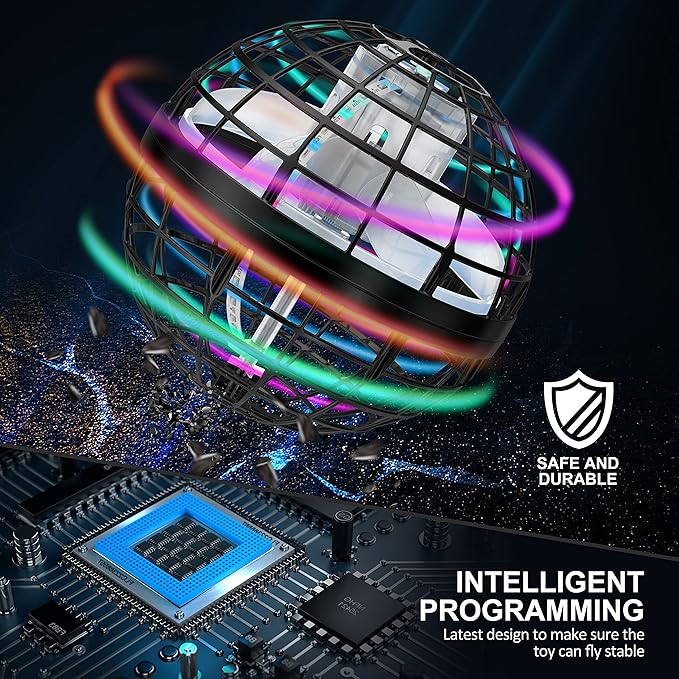 - High-Tech Hand Controlled Drone Toy With Cool RGB Light: The flying orb toy provides intelligent flight. Different throwing angles and speeds will create different flight lines and boomerang effect.You can use your ingenuity to create your unique way of playing.The colorful led at night will make your magic ball cooler