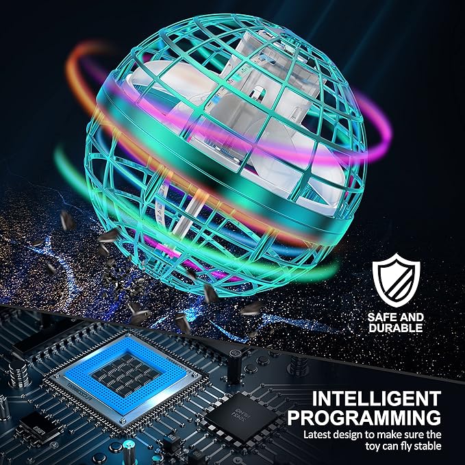 - High-Tech Hand Controlled Drone Toy With Cool RGB Light: The flying orb toy provides intelligent flight. Different throwing angles and speeds will create different flight lines and boomerang effect.You can use your ingenuity to create your unique way of playing.The colorful led at night will make your magic ball cooler