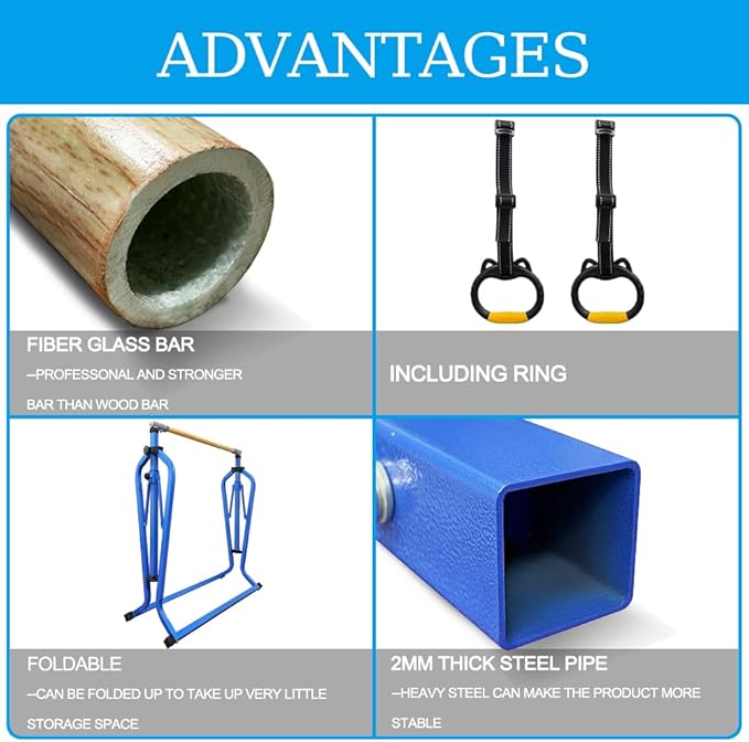 - ★Easy To Assembly★:Our professional grade gymnastics equipment is super easy to assemble and operate,Intuitively designed,The instructions are easy to understand,you can set it up in minutes regardless if you want to use it at home or in the gymnastics arena.This bar can withstand kids Swing, Climbing rope and ladder add one,Is the best gift for children at child/teenager/junior's birthday, Halloween, Thanksgiving Day , Christmas and so on.