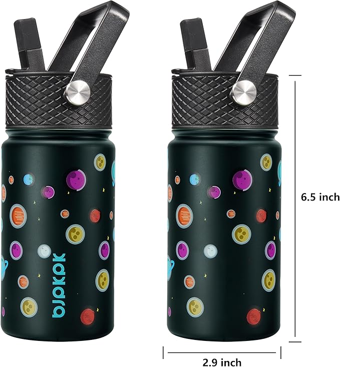 BJPKPK Water Bottle with Straw Lid, 15 oz Insulated Water Bottle, Stainless Steel Metal Water Bottles, Reusable Leak Proof BPA Free Thermo, Flask, Cups, Planets
