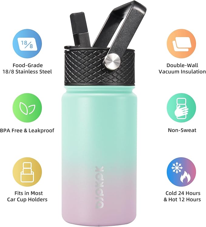 - VACUUM INSULATION WATER BOTTLE: BJPKPK insulated water bottle with straw lid is double-walled and vacuum sealed, which offers a never-ending chill for your favorite drinks - keeping them ice-cold for 24 hours and steaming-hot for 12 hours - so you can enjoy them at the perfect temperature for longer