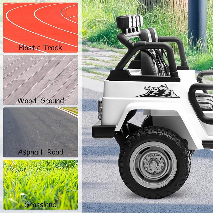 - 【Security Assurance for Kids】Both front and rear wheel of this kids electric car are equipped with spring suspension system to ensure a safer and a super smooth driving experience for kids.Soft start technology of the kids ride on car and prevents children from being frightened by sudden acceleration or braking, parental remote control, seat belt, and double lockable door design offer maximum safety for your kids.