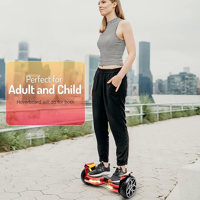 - 【Self-Balancing Technology】Self-balancing gyroscope helps keep the board level under your feet so you feel planted and in control, even if it’s your first time on a hoverboard or you haven’t ridden in years. Beginner-friendly for new riders.