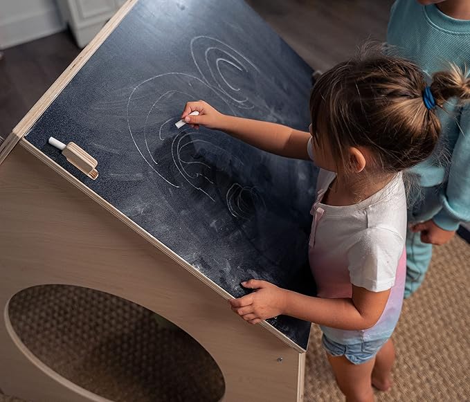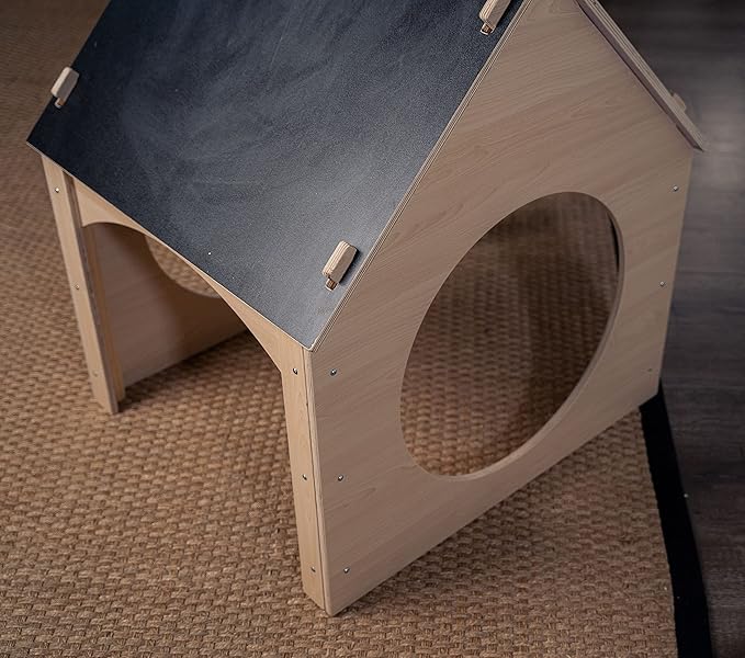 Avenlur Indoor Montessori Wooden and Waldorf Style Playhouse for Toddlers with Double Chalkboard Roof. Sturdy Play Set Structure for Children and Kids ECC Early Childhood Day Care, Preschool Playroom
