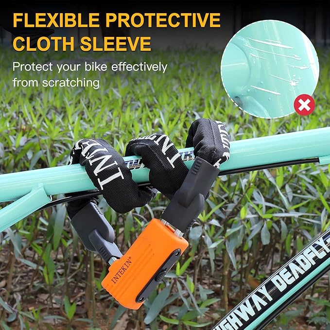 - HUMANISED DESIGN: This bike chain lock comes with 3 keys, so you'll always have a spare one. It will offer you some peace of mind in case you lose one. The bicycle chain lock comes with a flexible protective cloth sleeve which can protect the bike from scratch.