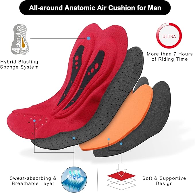 - NEW CUSHIONS: This cycling padded shorts features the latest cycling pads for enduro and ultra-long distance riding. Its design has been specially developed for the male anatomy. The cushion provides better fit and saddle stability, with increased breathability to reduce heat. Flat, soft wings provide more room for movement and protect the inner thigh area from chafing.