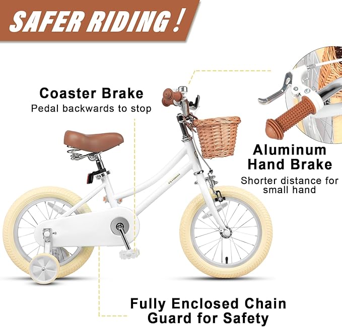 - 【Safe & Durable】- Coaster brake makes it easy to learn. Enclosed chain guard prevents your little one touching the chain. Durable high tensile steel construction provides long-lasting reliability, backed by a LIFETIME warranty on the frame.
