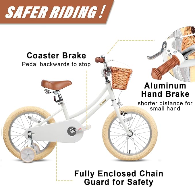 - 【Safe & Durable】- Coaster brake makes it easy to learn. Enclosed chain guard prevents your little one touching the chain. Durable high tensile steel construction provides long-lasting reliability, backed by a LIFETIME warranty on the frame.