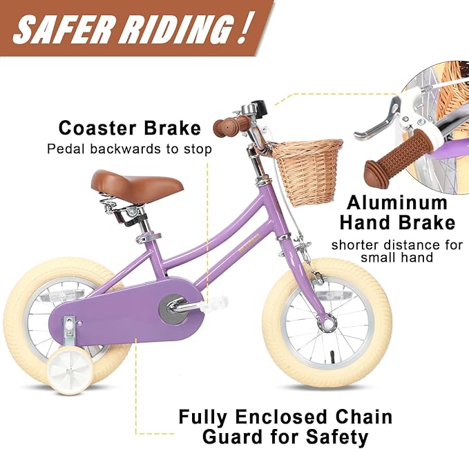 - 【Safe & Durable】- Coaster brake makes it easy to learn. Enclosed chain guard prevents your little one touching the chain. Durable high tensile steel construction provides long-lasting reliability, backed by a LIFETIME warranty on the frame.