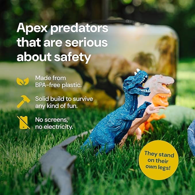 - Safe and Durable Playtime: Crafted from BPA-free Polyvinyl Chloride, these toy dinosaurs for toddlers 1-3 are designed to endure energetic play while maintaining safety standards. Parents can trust these durable dinosaur figures for kids 2-4