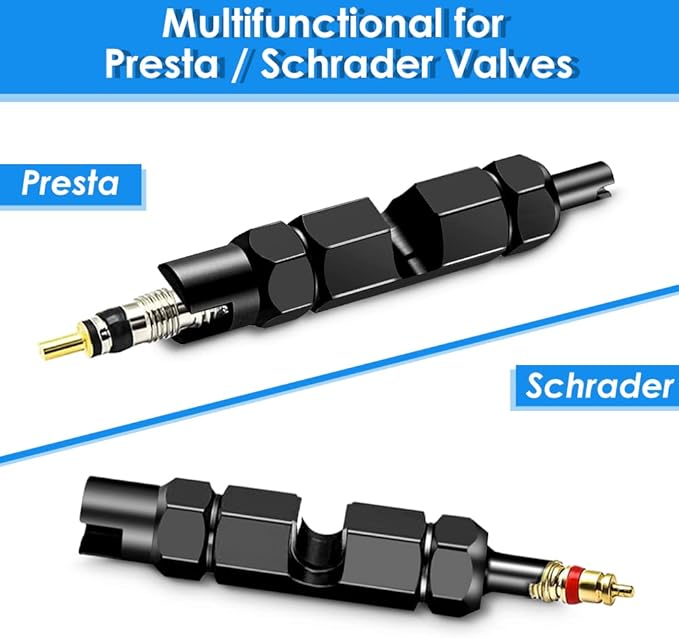- 17 in 1 Multi-function Repair Tool --- Extra added 1* multifunctional tool for presta/schrader valves. WOTOW foldable multi-function bike repair tool is made of high quality stainless steel, sturdy and durable, includes Hex key (mm): 2 | 2.5 | 3 | 4 | 5 | 6 , Socket Wrench (mm): 8 | 9 | 10 and a Extension Rod, Flat Wrench (mm): 8 | 10 | 15, Spoke 14GE, Slot driver, and Phillips Cross Drive, WOTOW Bike Tool Kit have your back for each roadside repair