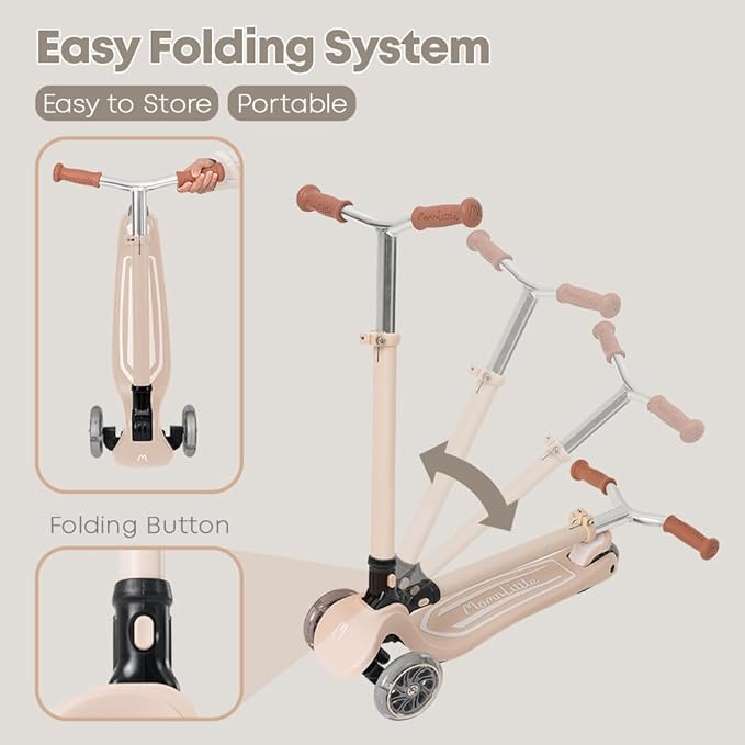 Kick Scooter for Kids Ages 3-10 (Beige/Pink/Navy/White) 3 Wheeled with LED Light-Up Wheels CPSC Certified Foldable and 4 Height Adjustable Toddler Scooters for Boys Girls