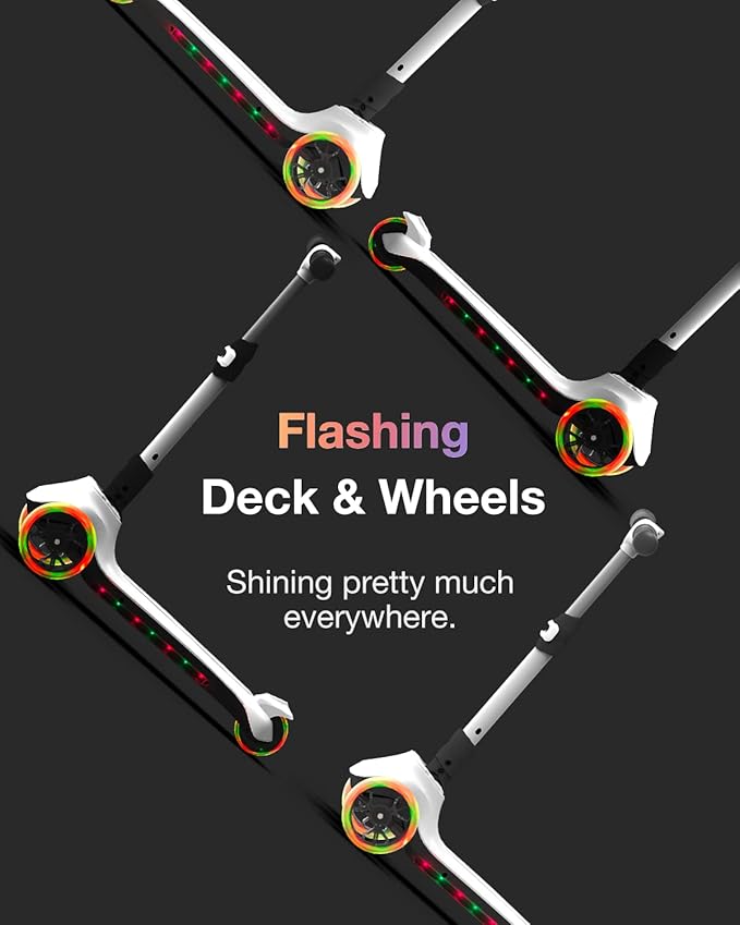 - [Finger Button Friendly Control] Easy balance for any kids. Boost the 3 wheel electric scooter for kids with a thumb. Stand wherever you want on the extra-wide and thick flashing anti-slip deck, lean to steer, and enjoy continuous electric power. This light up scooter with fantastic flashing wide deck and 3 LED big wheels make your kid the shining star. 3 adjustable heights(26''/28''/30'') fit boys & girls ages 2-9 years old . Surprising birthday gift for young kids and toddlers 2025