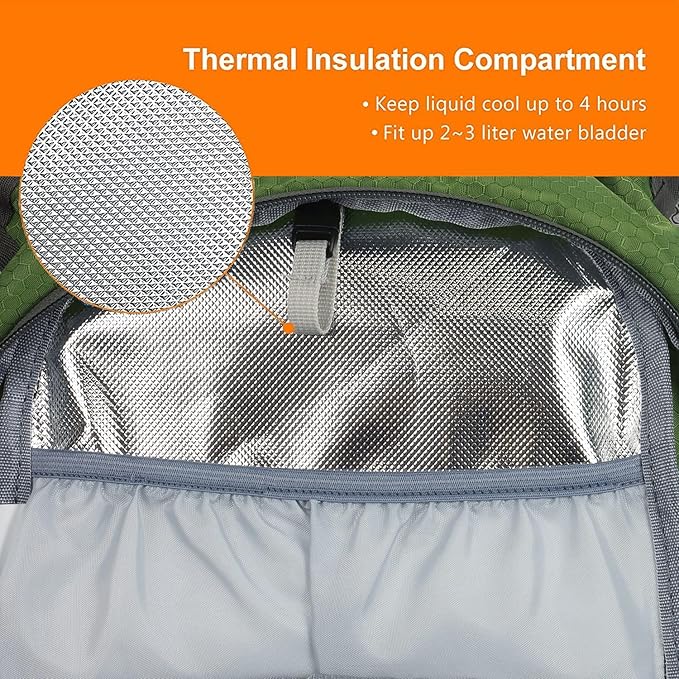 - ❤【INSULATED AND WELL PADDED】: With an insulated pocket inside, this water bag keeps water nice and cool for 2 to 6 hours even in the heat. With mesh padding for relieving fatigue & ventilation, this water backpack for hiking keeps your pack cool and your back dry.