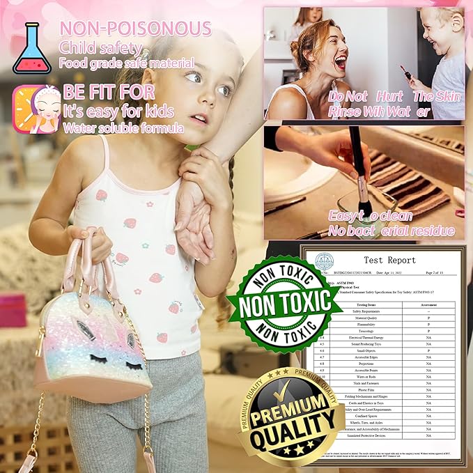 - Made from soft silicone, plastic, and EVA foam, this makeup kit for girls is completely safe for children. No real makeup products are used, so your little one can enjoy playing without any risks associated with real cosmetics.