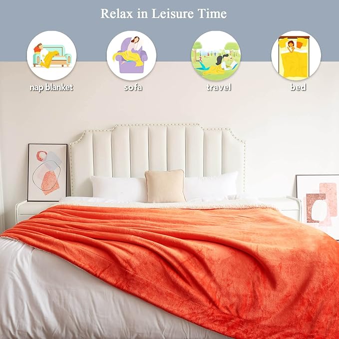 NANPIPER Sherpa Blanket Queen Fleece Bed Blankets Soft and Warm Fuzzy Microfiber,Orange 90"x90"