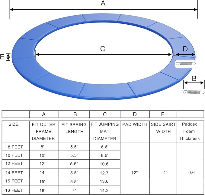 Giantex 8Ft 10Ft 12Ft 14Ft 15Ft 16Ft Trampoline Pad, Tear-Resistant Edge Cover Springs Protection Pad, All Weather Replacement Trampoline Safety Pad