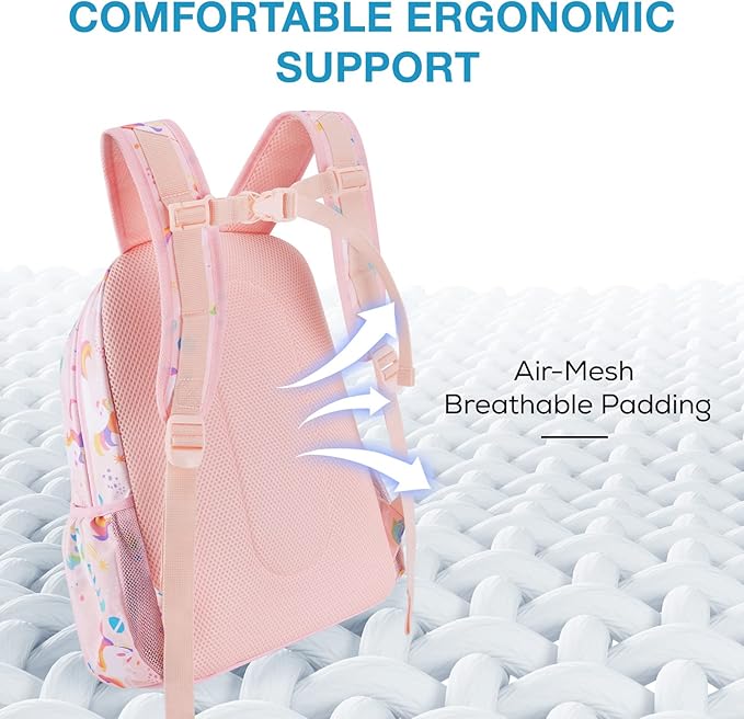 - Comfortable & Lightweight: Crafted with your child’s comfort in mind, this bookbag weighs a mere 1.3lb. Adjustable padded breathable mesh shoulder straps ensure a snug fit throughout the day while adjustable chest strap not only stabilizes the load but also promote healthy posture, protecting your child's spine as they grow